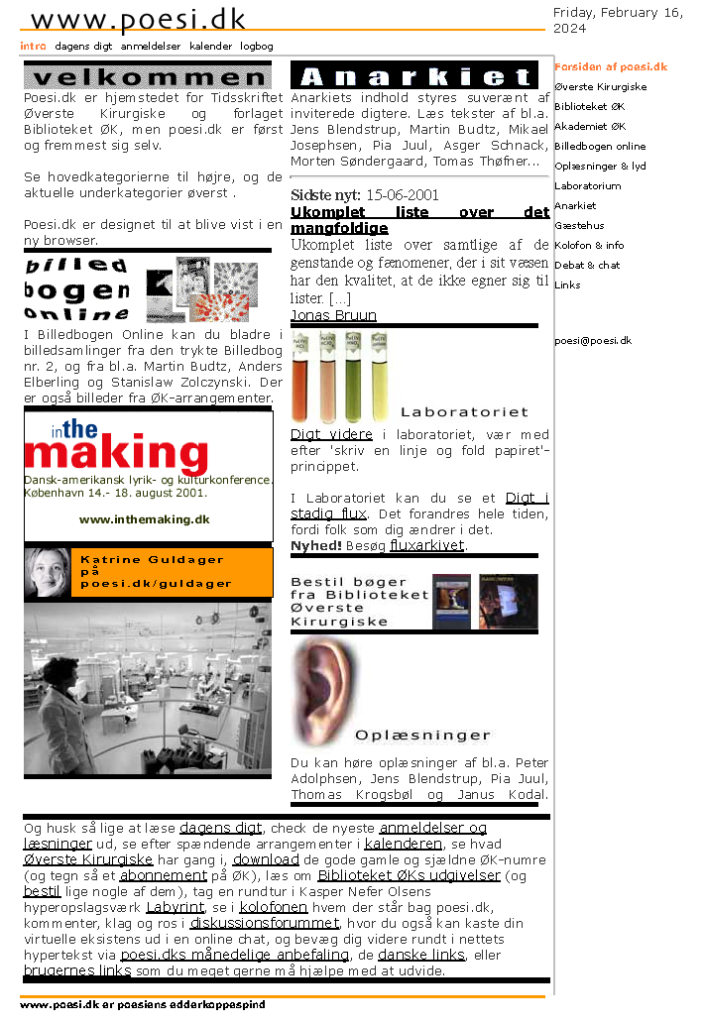 Sådan så poesi.dk ud i 2001.